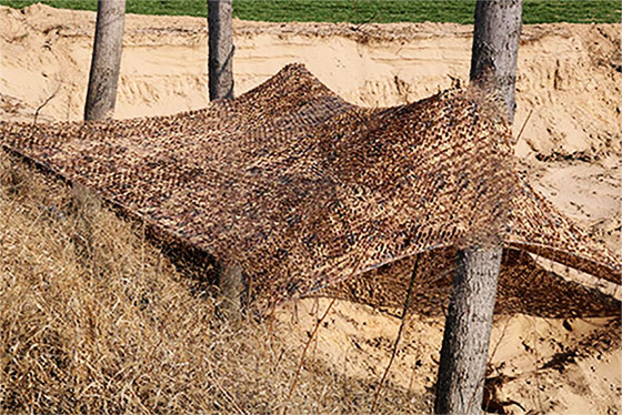 此辦法是比較直觀,容易辨認的辦法,握住偽裝網的角并用雙手擦拭。 高質量的偽裝網聲響昏暗,就像在擦一張紙,而低質量的偽裝網就不是這樣,由于殘次的偽裝網是用殘次的網狀材料加工的,以降低本錢。