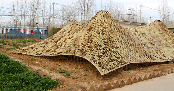 偽裝網是一種重要的偽裝遮障器材,在戰場上是兵器裝備、軍事設施等軍事目標的“保護傘”。早在次世界大戰時,為了隱蔽兵器,軍隊就將漁民用的舊魚網蓋在兵器上,并在網上設置一些。